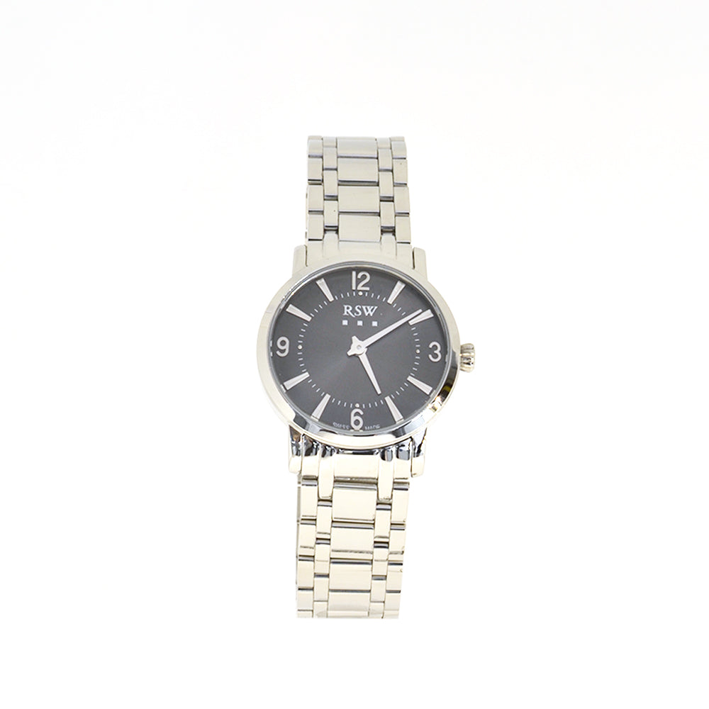 Rsw Ladies Stainless Steel Watch With Metal Bracelet & Black Dial