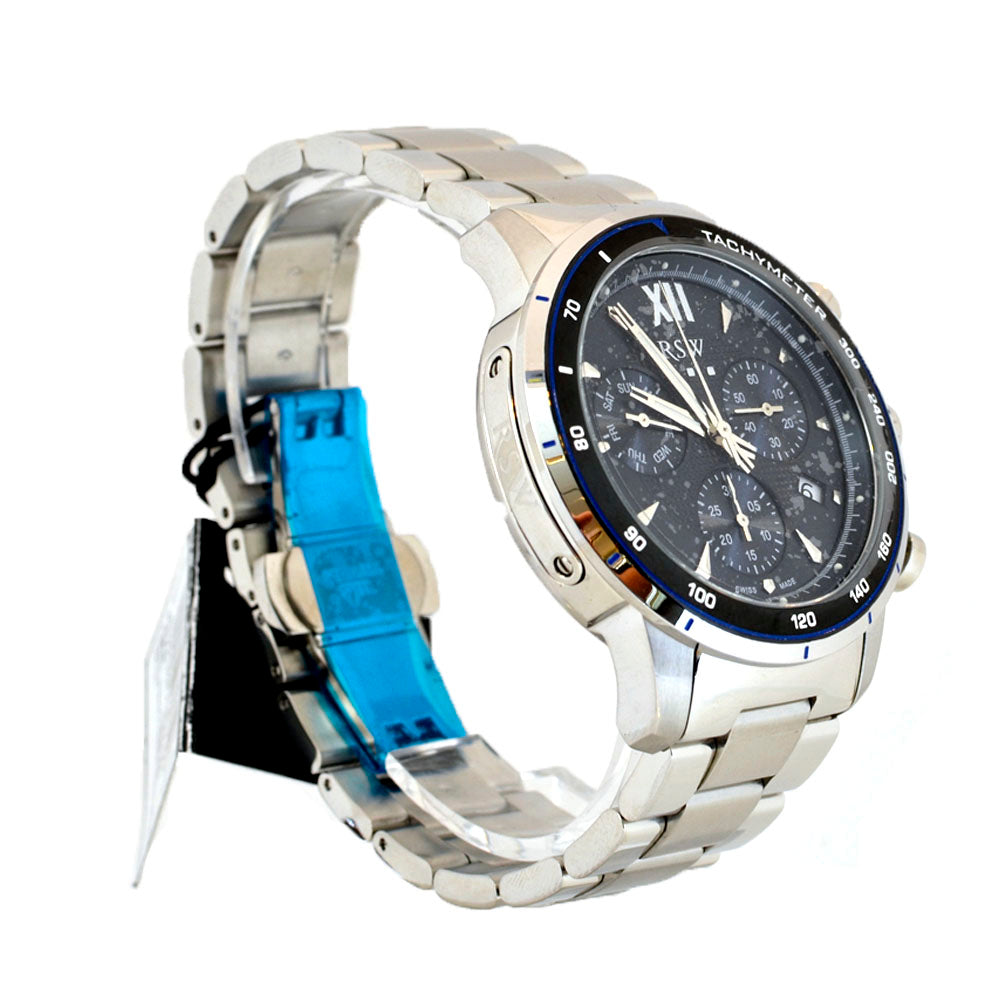 Rsw mens watch stainless steel metal bracelet with blue design case and blue chrono dial quartz
