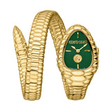 Roberto Cavalli Women's Serpent Head Green Dial Gold Tone Watch