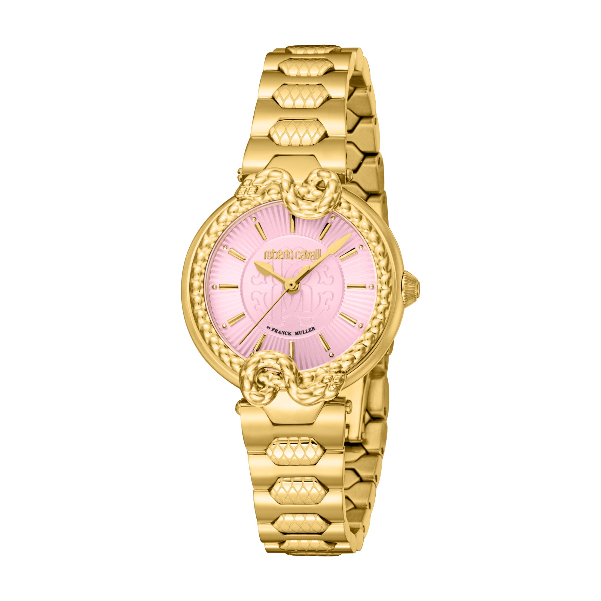 Roberto Cavalli Women's Pink Dial Gold-Tone Watch