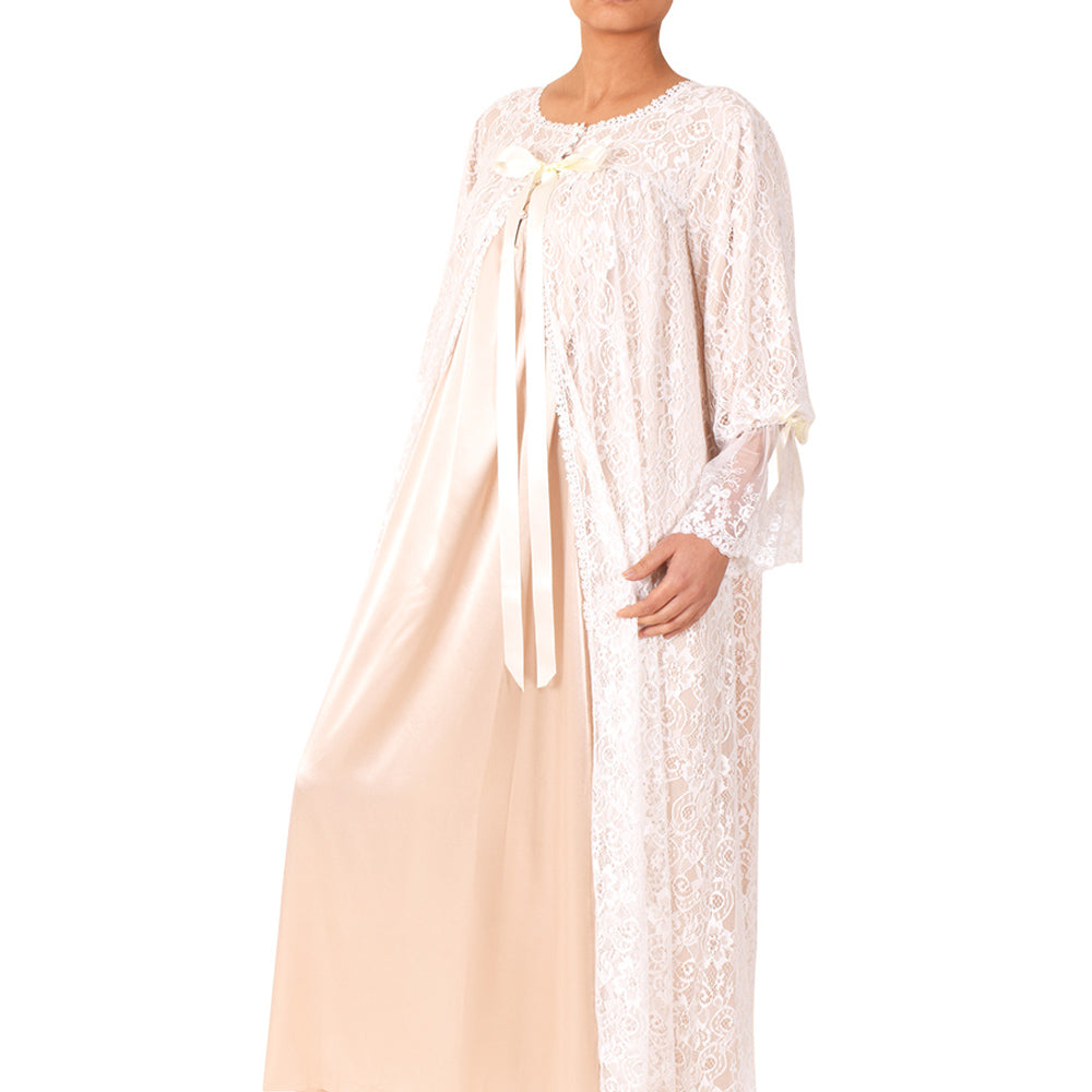 A fabulous Satin is trimmed with a luxurious amount of embroidery lace. this nightdress gives an excellent glamorous set, makes a very attractive and comfortable.