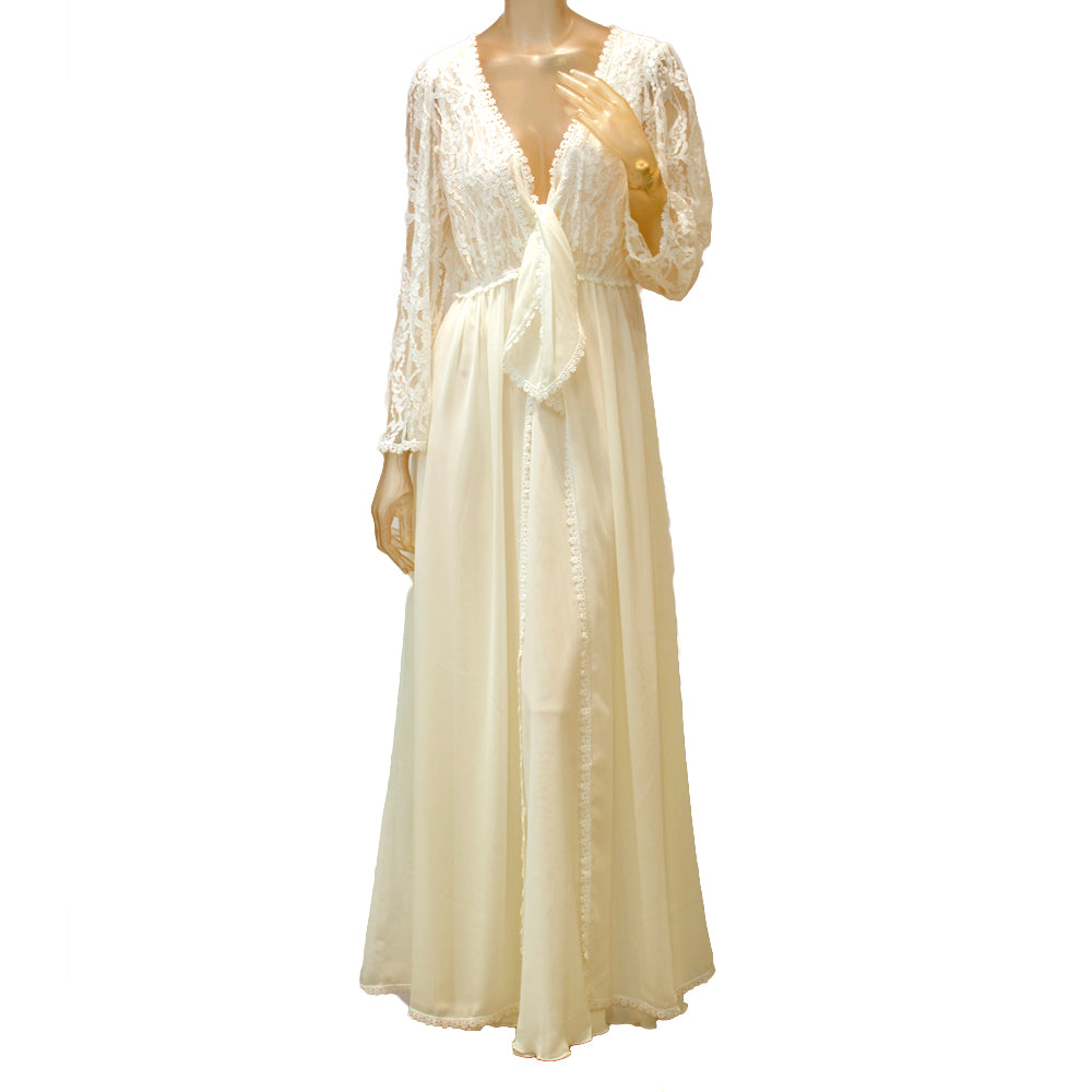 Sally Poppy Nightdress/Robe Set Chiffon Creamsize Small