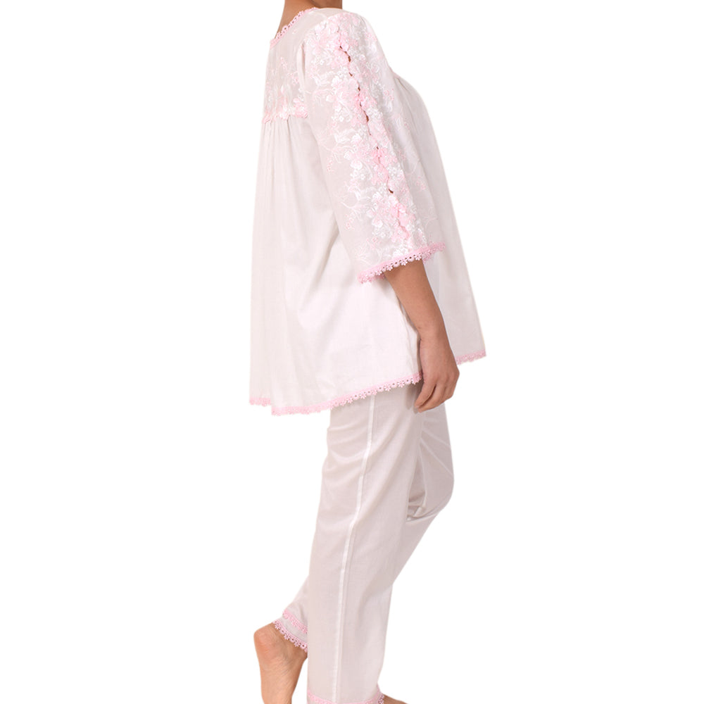Sally Poppy Pajama Cotton Ivory/Pink