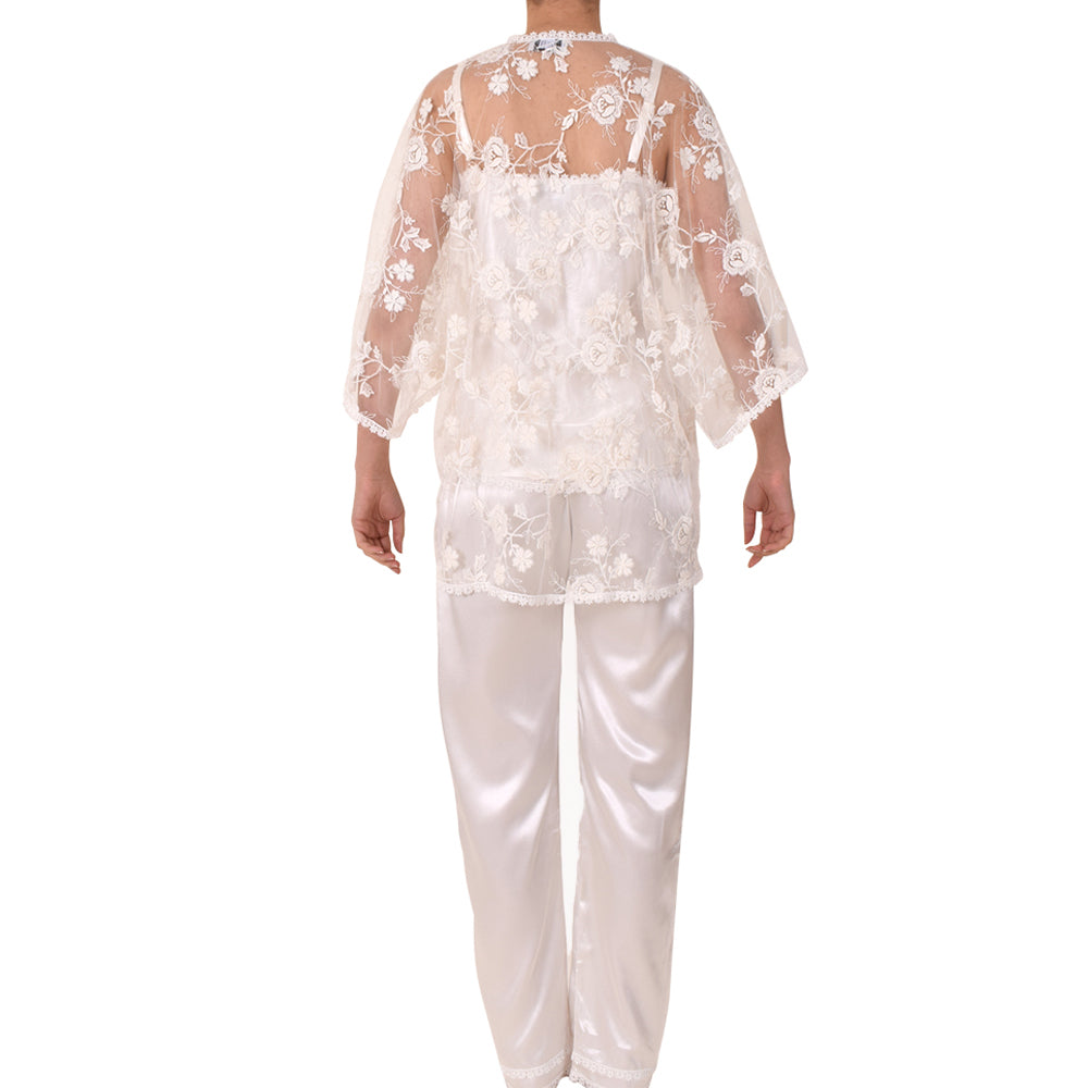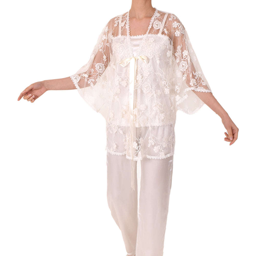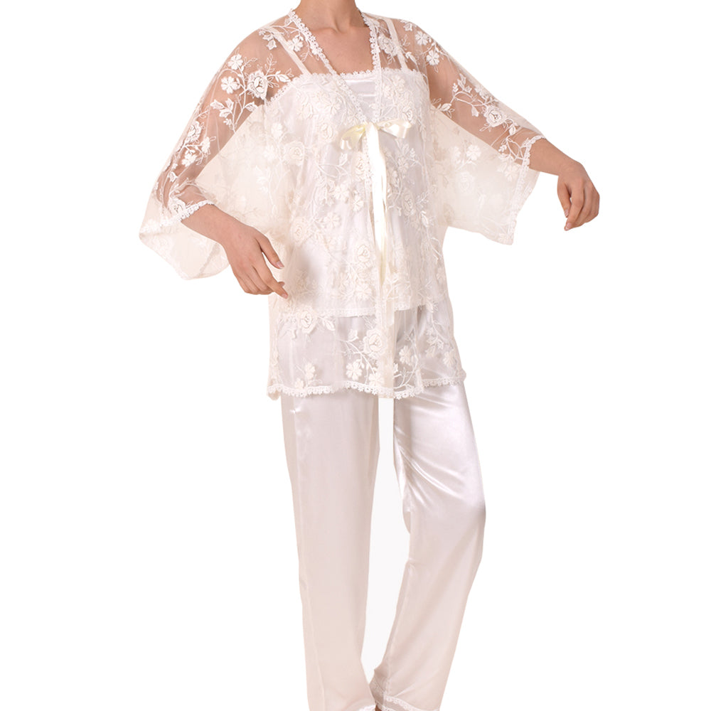 This two piece pajama set comes with a long sleeve with a beautiful embroidery lace. Both piece are made from soft fabric that keeps you comfy and lending a fresh and light fit.