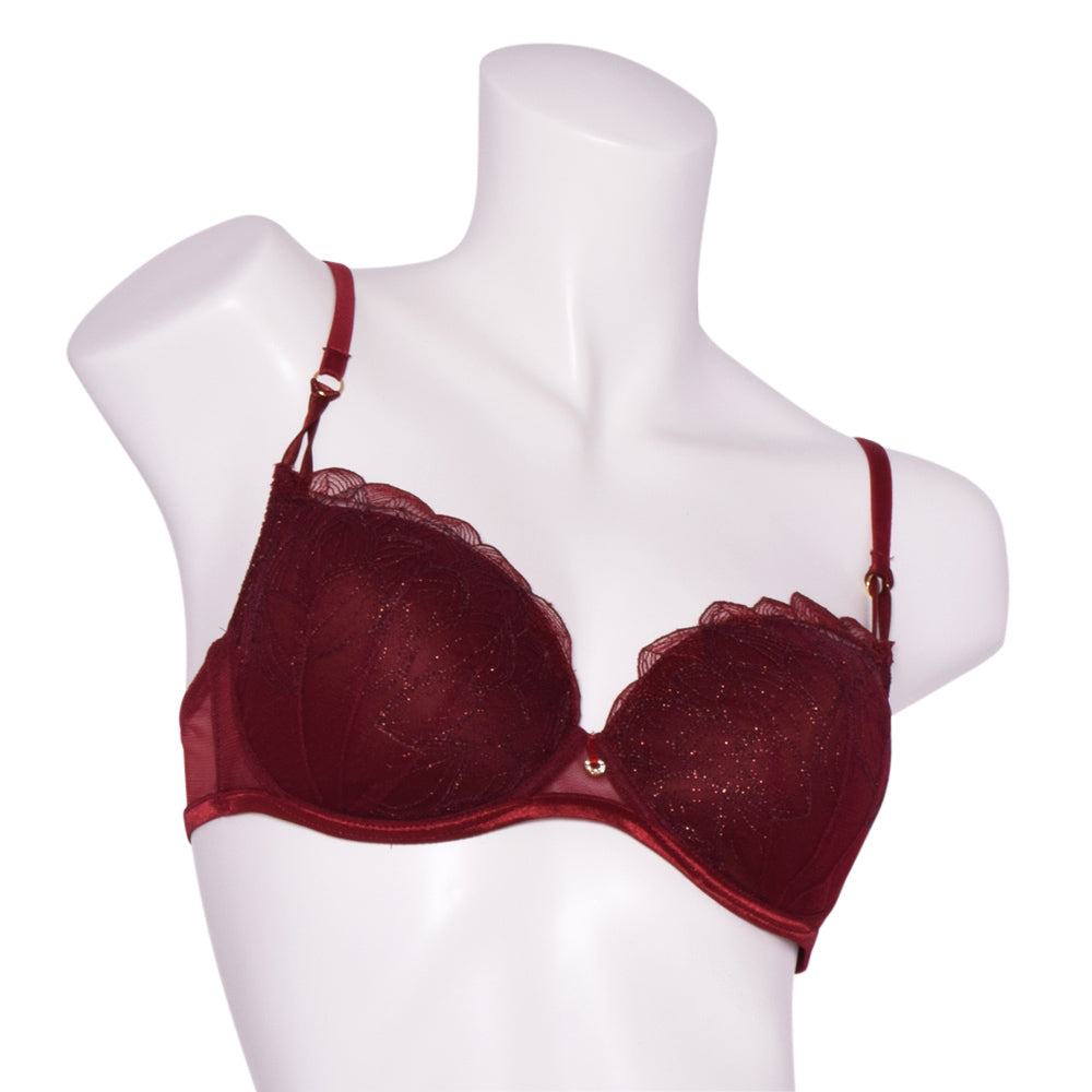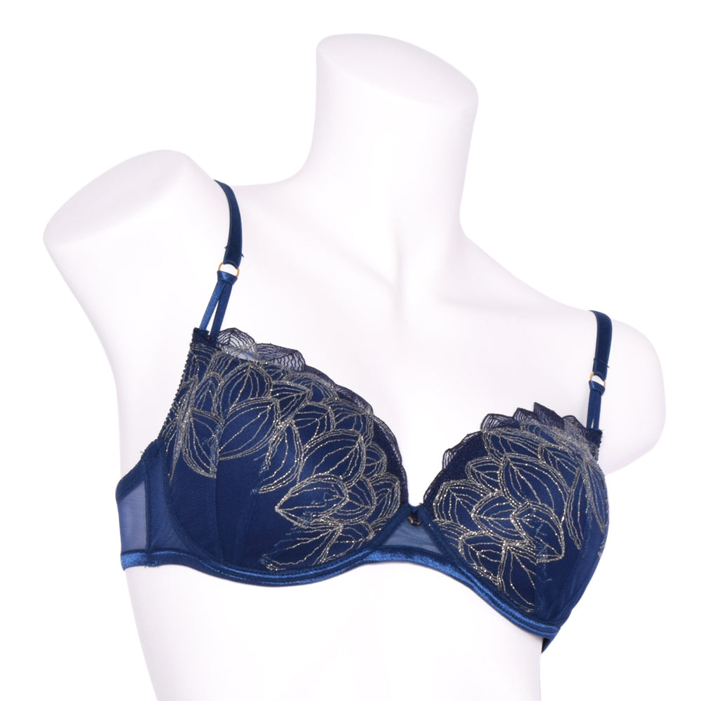 The Selmark 3D Moulded Bra is a stylish and elegant bra that features a unique wraparound effect. This bra is designed with a 3D moulded cup that provides a rounded and natural shape to the bust. The cup is constructed with high-quality tulle, embroidery, and golden glittering threads, giving it a luxurious and sophisticated look. The wraparound effect of this bra means that the cups extend towards the sides, providing enhanced support and coverage for a fuller bust. The side panels of the bra are made with firm but smooth materials to ensure a comfortable and secure fit. The Selmark 3D Moulded Bra also features satin finishes, adding a touch of shine and glamour to the garment. The straps are adjustable and designed to stay in place, providing optimum support and comfort all day long. This bra is a perfect combination of style, elegance and functionality. It offers a natural shape, support, and comfort, making it a must-have for any woman's lingerie collection. SPECIFICATIONS