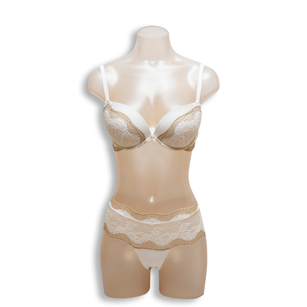 Super bra with double padding that increases up to two sizes. It enhances contour and firms the chest. This bra is ornamented with small ties and is romantic vintage- inspired.