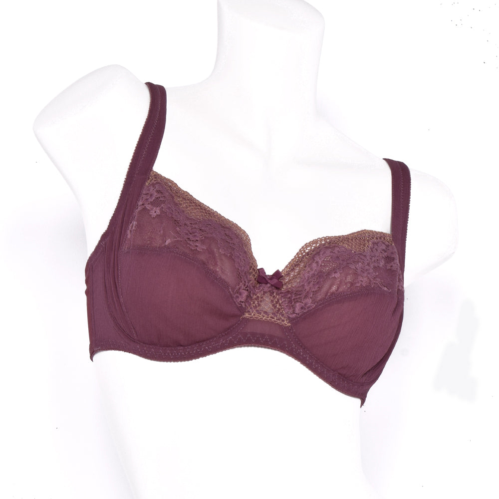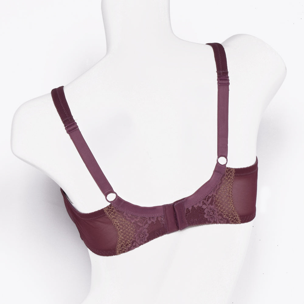 Unpadded full cup support bra with a wraparound control effect. This bra is ultra comfortable and stylish with perfect pattern vintage lace details in the cups.