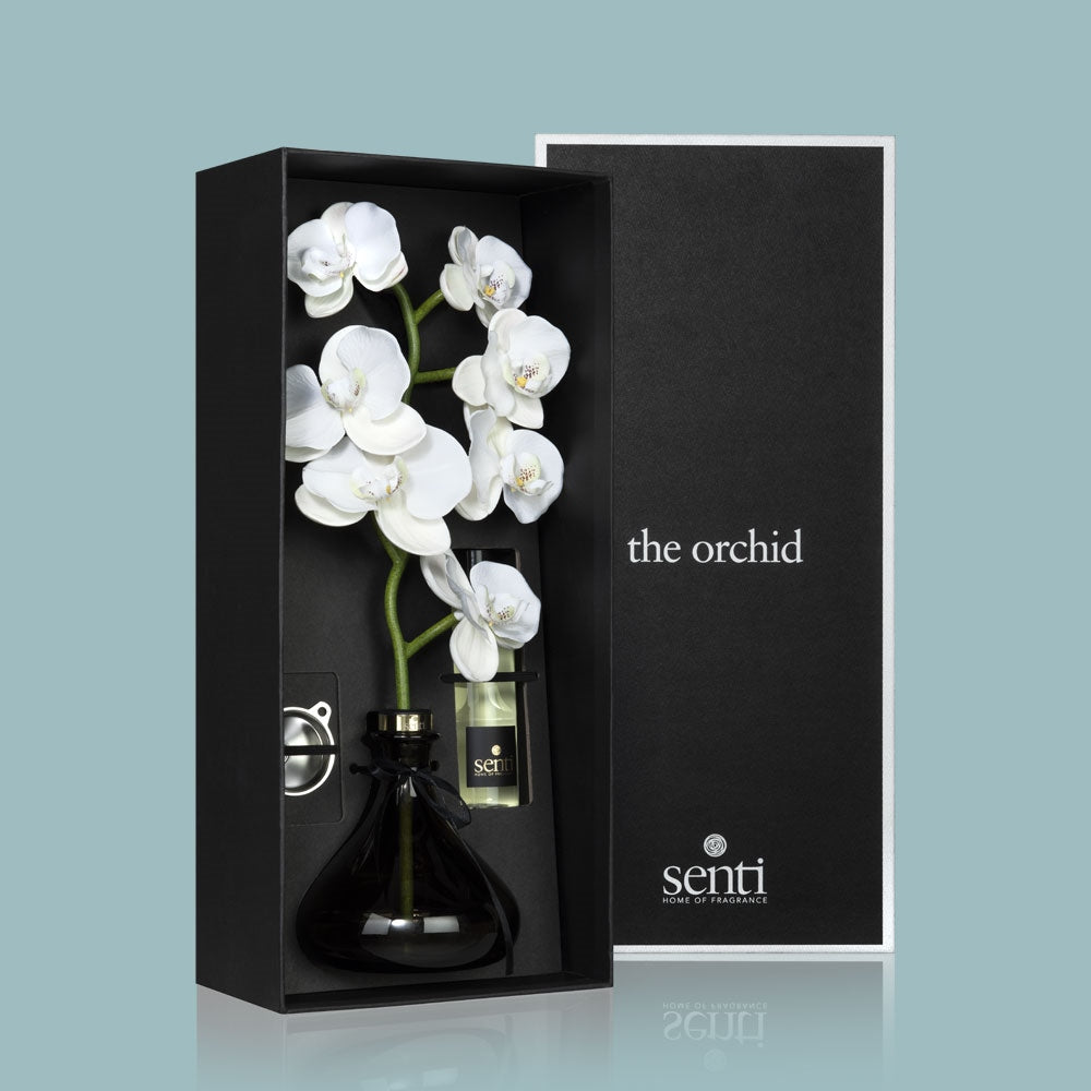 - The Senti Orchid is simple to use - carefully unscrew the stem by turning the gold ring at the top of the bottle and fill the Orchid with all the fragrance using the funnel provided. Screw the stem back onto the bottle. Turn The Orchid upside down for 10 seconds to allow the fragrance to reach each petal. Repeat the above process once every 3 days.