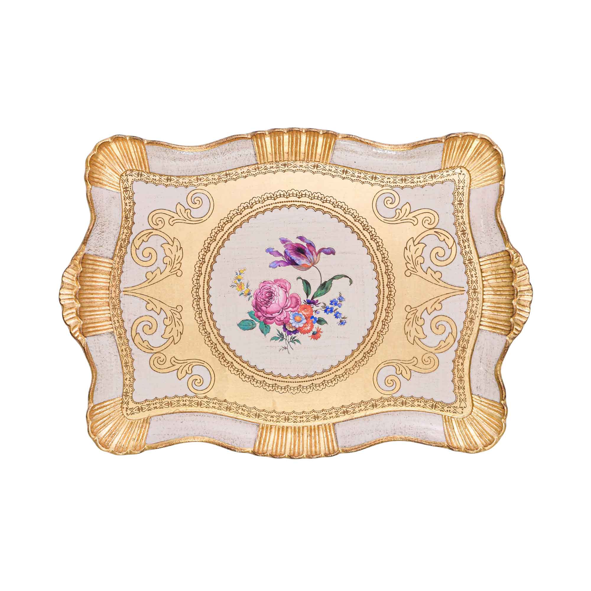 Made by Florentine master craftsmen, This is a classic Design Tray with Hand Painted design