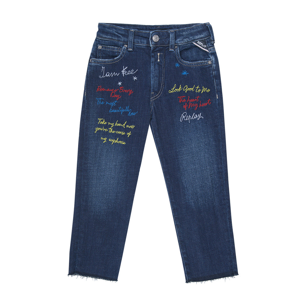 Replay denim blue trousers for your childrens stylish and amazing winter wardrobe.