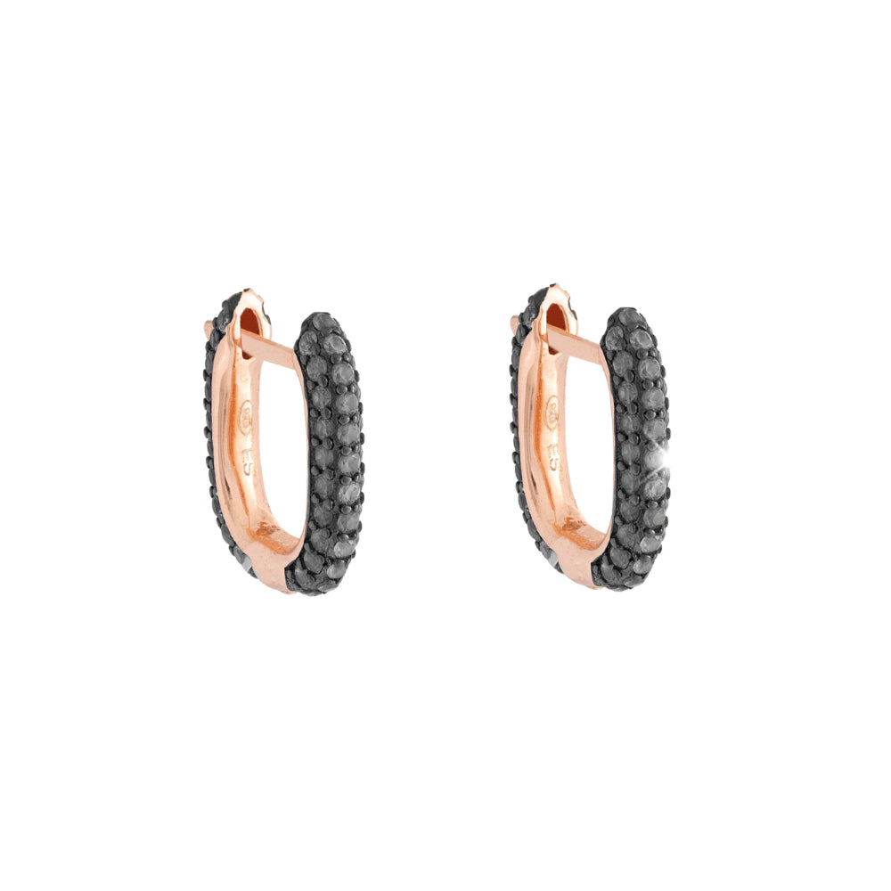 Rebecca Women'S Earrings From The Golden Ear Collection. Jewel Made Of Gold Plated Silver With Rose Gold Finish. Jewel With Black Stones. Height Earrings About 1.5 Cm.