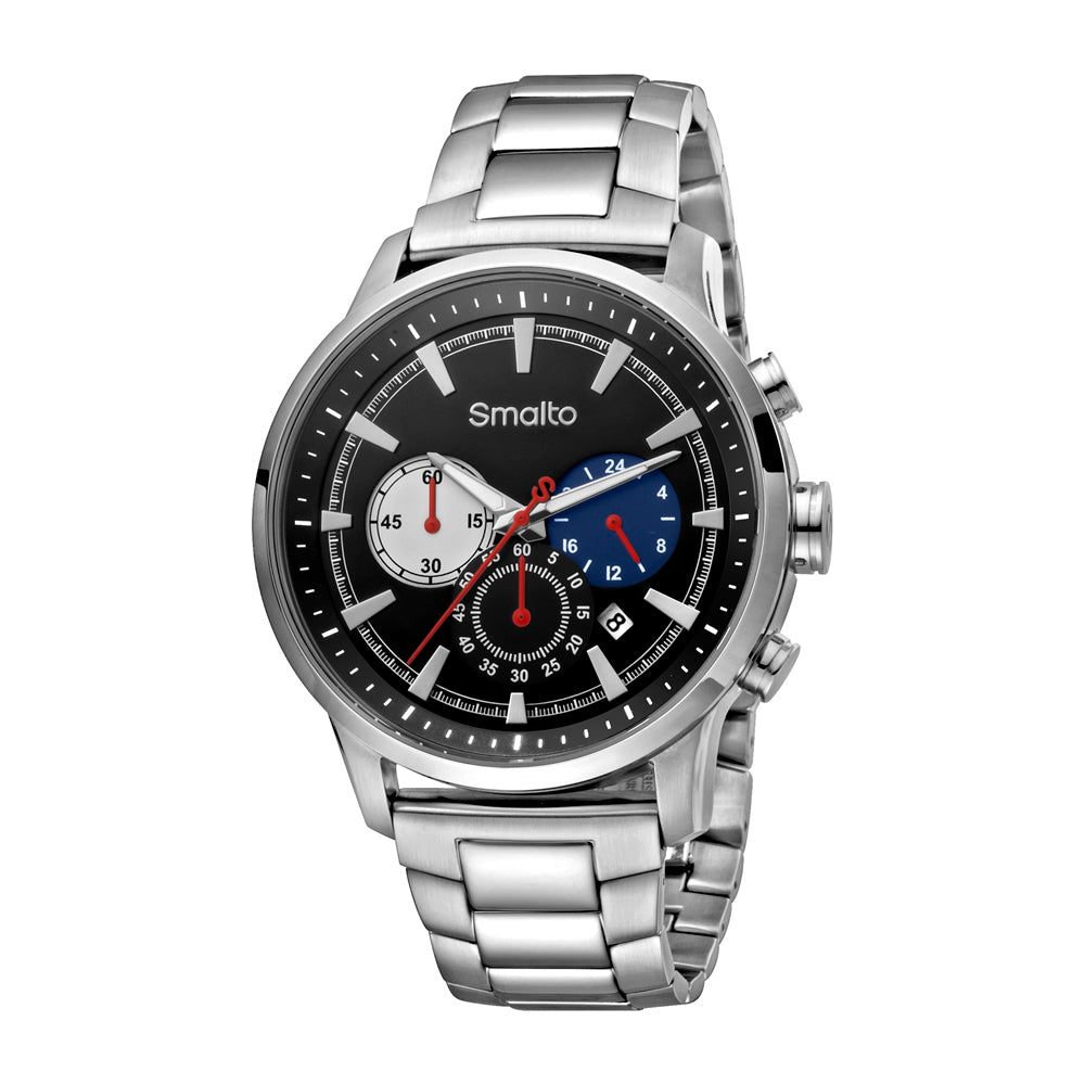 Smalto Men's Stainless Steel Chronograph Watch Black Dial With Metal Bracelet