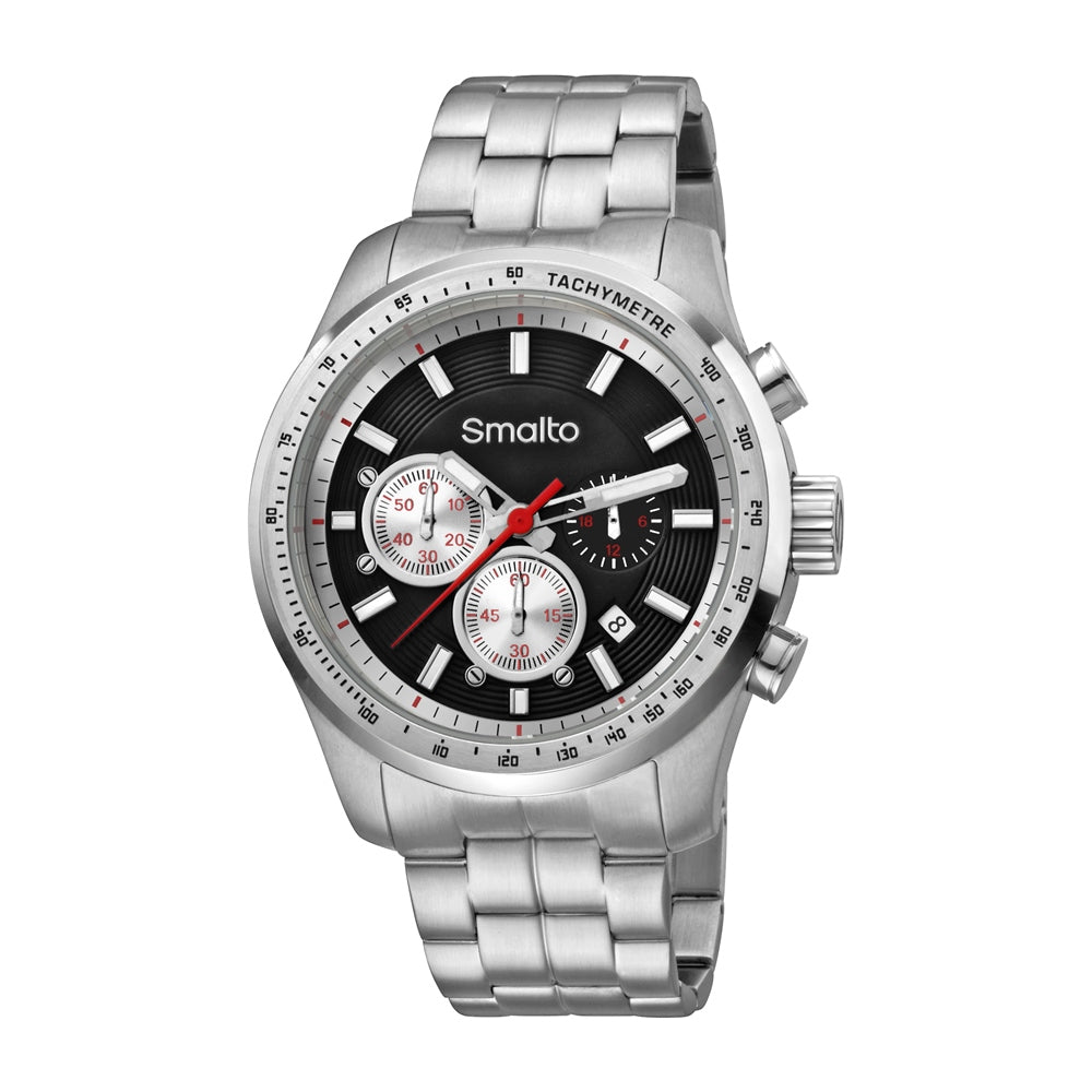 Smalto watch men stainless steel case and metal bracelet with black chrono dial