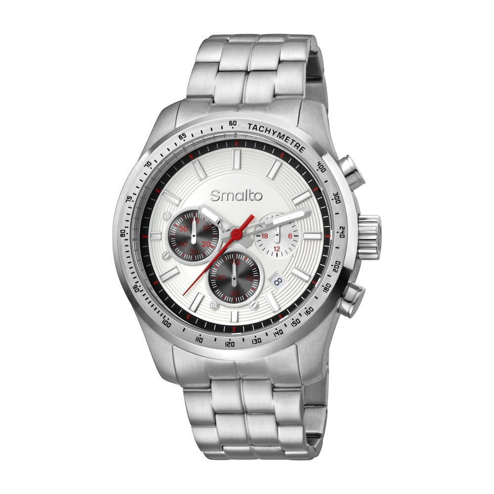 Smalto watch men stainless steel case and metal bracelet with white chrono dial