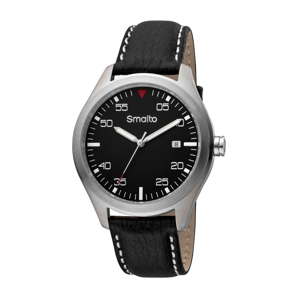 Smalto watch men watch stainless steel case black dial with black leather strap