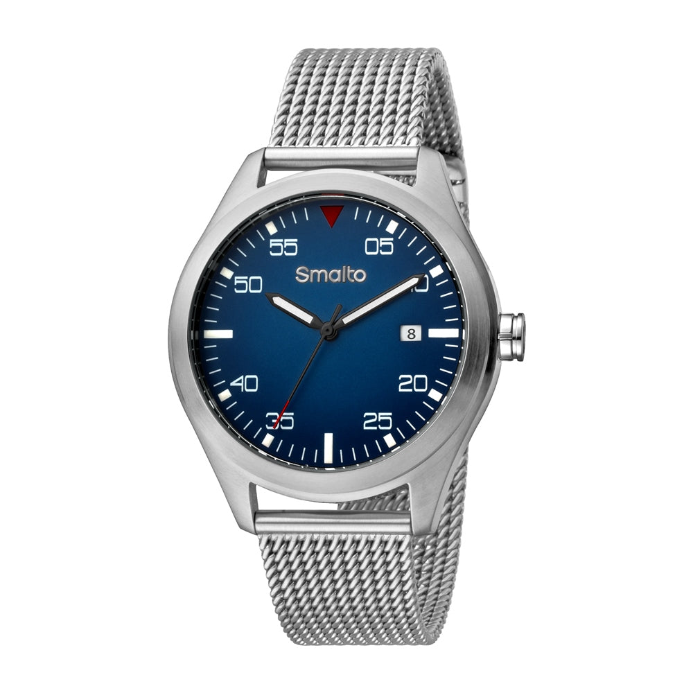 Smalto watch stainless steel case with mesh band and blue dial men watch