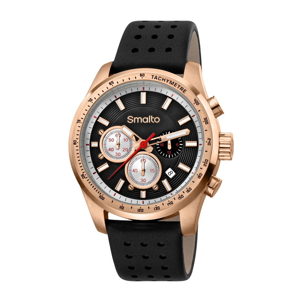 Smalto Men's Stainless Steel Watch With Rosegold Case & Black Dial