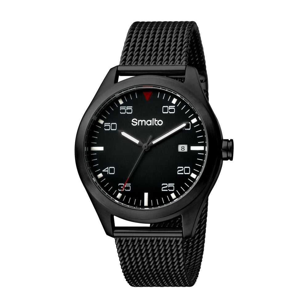Smalto Men's Watch With Matte Black Case With Mesh Metal Bracelet & Black Dial