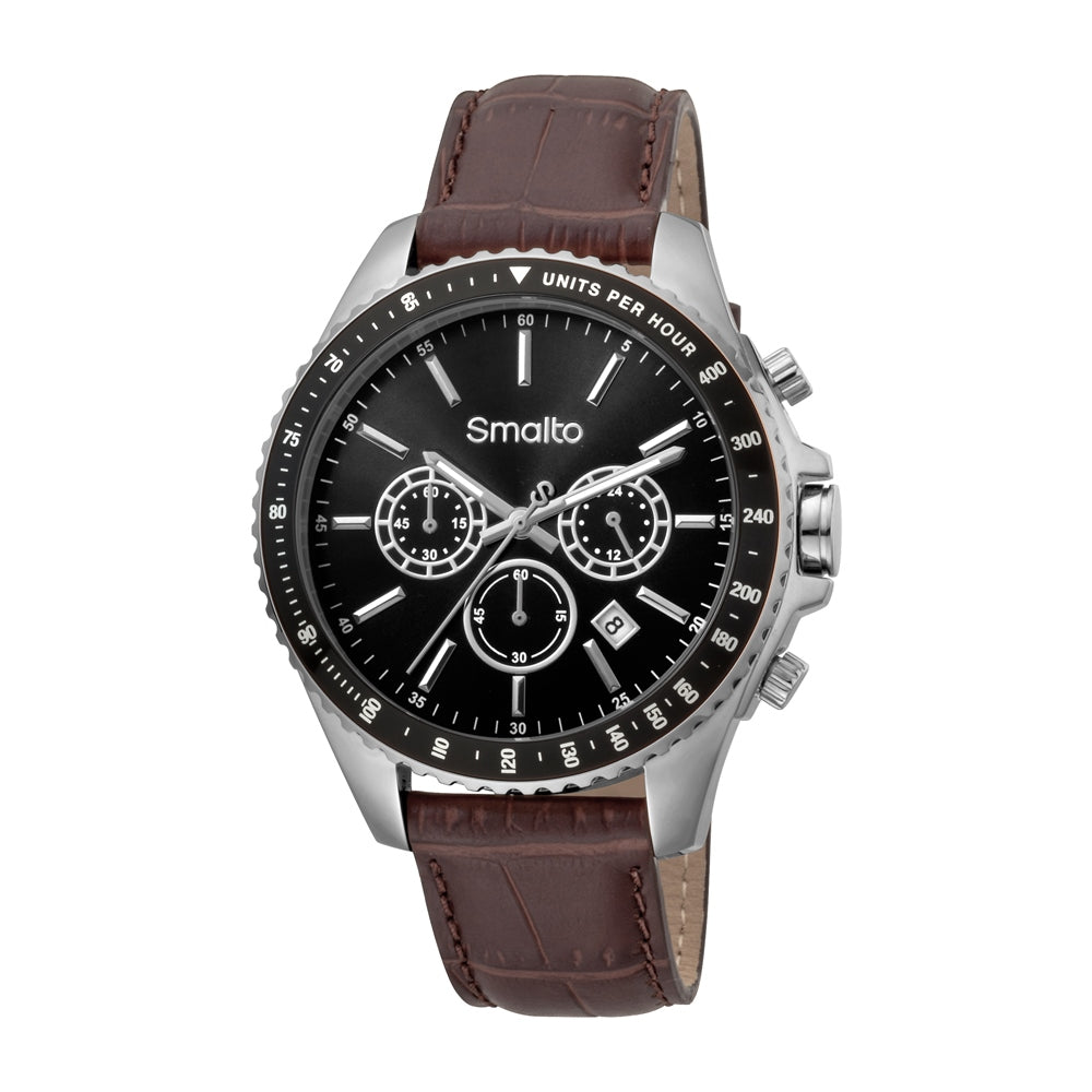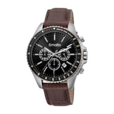 Smalto Watch Men's Stainless Steel Case Black Chrono Dial With Brown Leather Strap