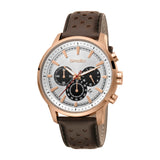 Smalto watch men stainless steel case silver chrono dial and black leather strap