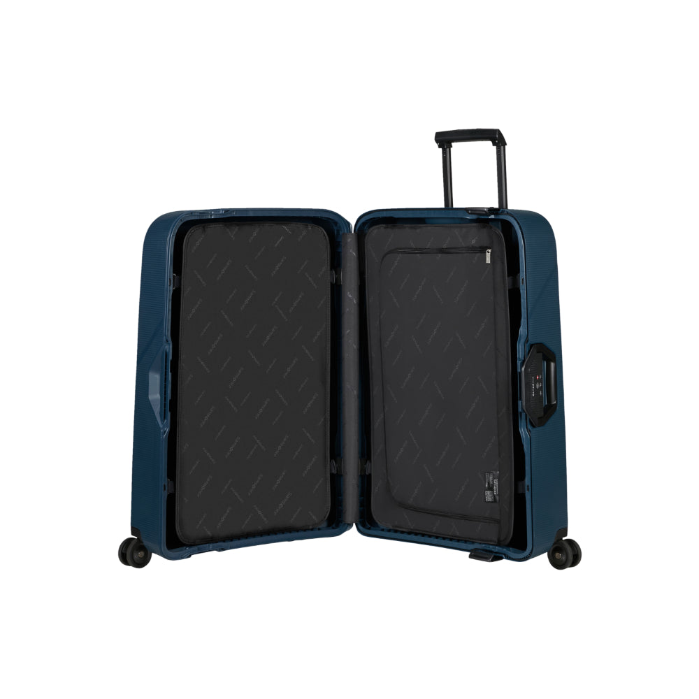 Meet Magnum Eco™, the centerpiece of our responsible journey! It is an unmatched combination of top notch security, lightness, high packing capacity and sustainability. As a result of our cutting edge engineering and superb European manufacturing expertise, Magnum Eco is the lightest in its class, keeping your belongings secured via 3 point lock closing system. Strength and robustness are guaranteed thanks to the self reinforcing design and the high quality recycled polypropylene, created from post consumer waste. The interior is not to be forgotten, offering a high packing capacity with three height adjustable divider pads, one with large pocket for easy packing. Also, the interior recycles post consumer waste as the textile is made from 100% post consumer recycled PET plastic bottles. Available in a variety of striking colors, the secure and fully featured Magnum Eco is essential for your next journey.