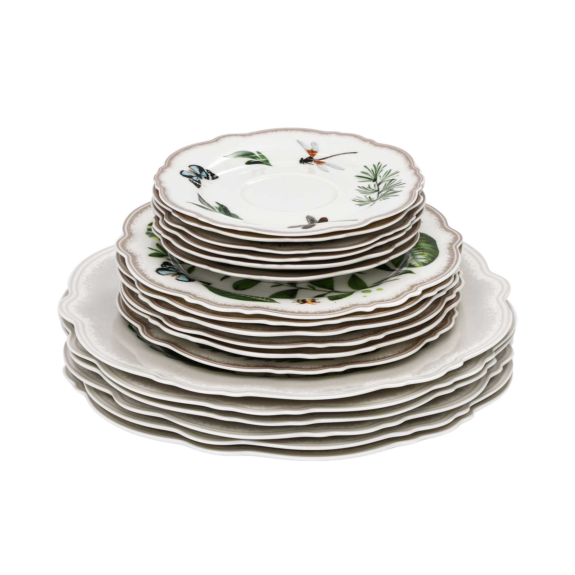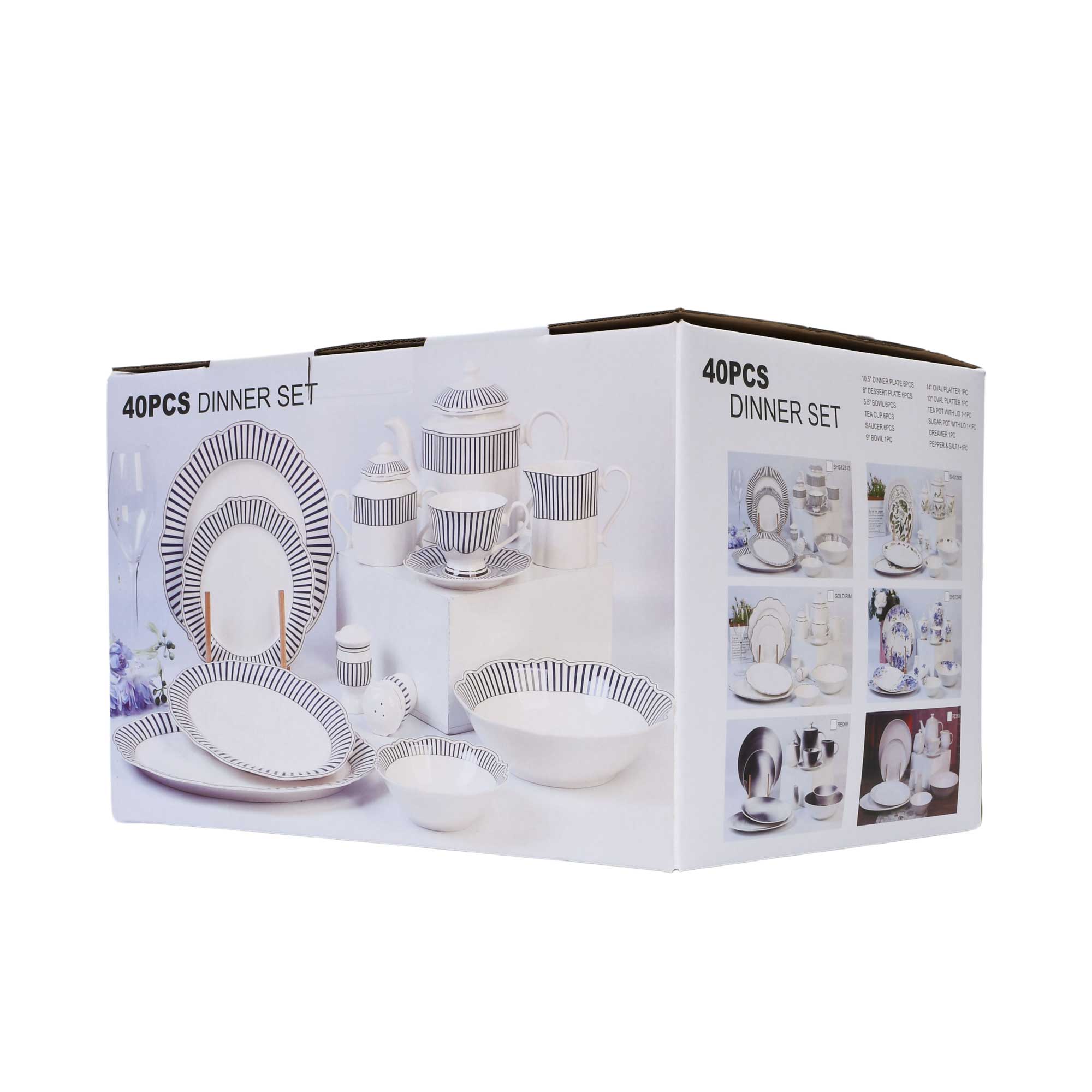 Casa Blu Dinner Set of 40 pc with On Glaze Decal Decoration Scallop Shape