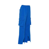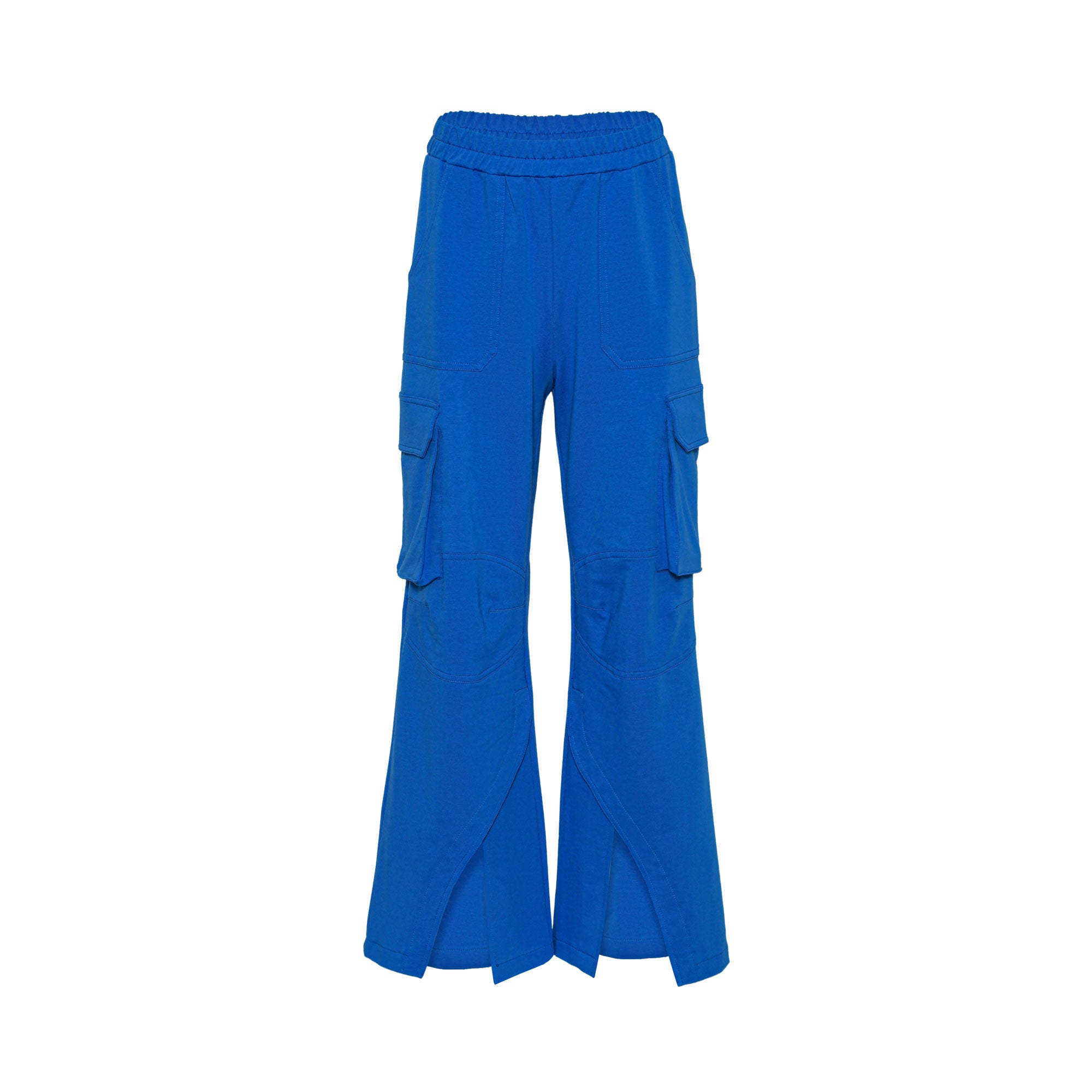 The Oblique Women's Cyan Pant is a stylish option for any wardrobe. These pants feature an elasticated waistband, a flared cut, and two front slits for added style. The two side pockets offer extra storage space, while the two flap thigh pockets offer a unique look. Two back pockets, meanwhile, give a more casual touch. The sleek, fitted design of the pants makes them perfect for almost any occasion - from evening drinks to casual weekends. They are made from a high quality stretch fabric that ensures a comfortable fit, and are finished with clean lines that make them aesthetically pleasing. The trousers provide a contemporary, chic silhouette, ensuring that you look your best no matter where you go. SPECIFICATIONS