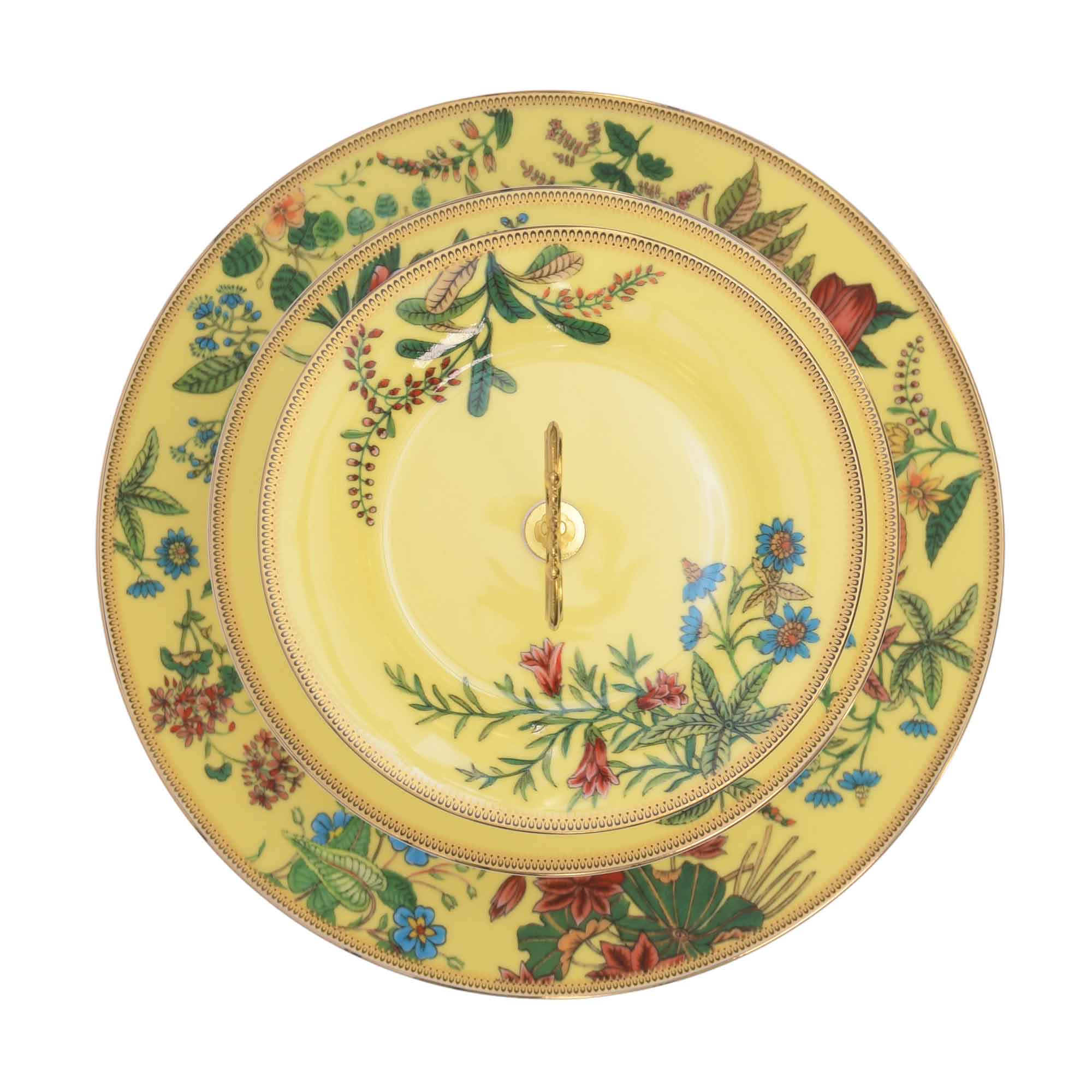 Stechol Fine Bone China 3 Tier Rim Cake Plate Yellow