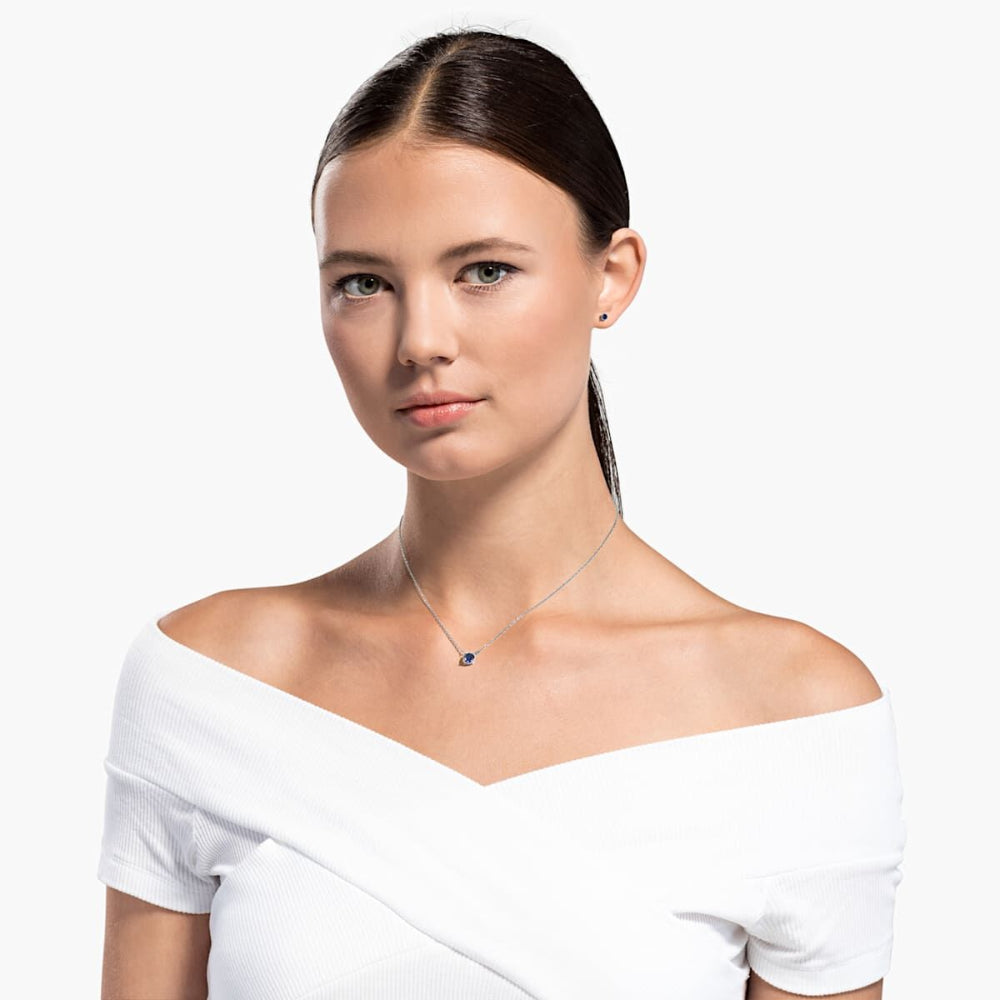 Part of a special collection celebrating our 125th anniversary, this beautiful Swarovski jewelry set is everything you need for a striking, sophisticated look. It is comprised of a simple yet elegant necklace and a pair of matching earrings, both featuring deep blue stones in rhodium-plated settings. The necklace features a snap hook so its length can be adjusted easily. This set works best when combined with a high-necked, dark top or blouse. It is also a great gift for a special occasion.