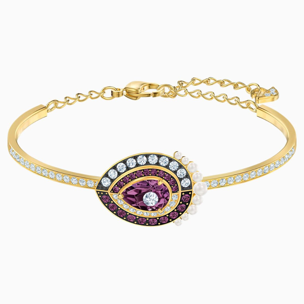 Take style inspiration from the opulent and ornate Baroque period with this gold-tone plated bracelet. Combining vintage elegance with fresh sparkle, it is embellished with clear and violet crystals, and the drop-shaped centerpiece features our refined stone-on-stone technique. Wear with a wide bangle or watch to create a chic contrast. 6/4.8 cm