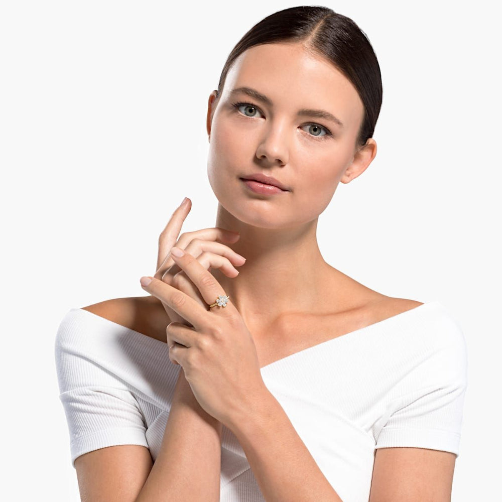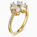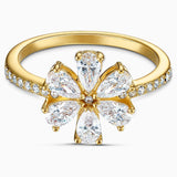 Atelier Swarovski continues to draw inspiration from nature with this refined ring in gold-tone plating. Luxuriously embellished with sparkling pavé, the flower motif brings timeless femininity to any look. Pair with a bold and colorful cocktail ring to create a glamorous contrast.
