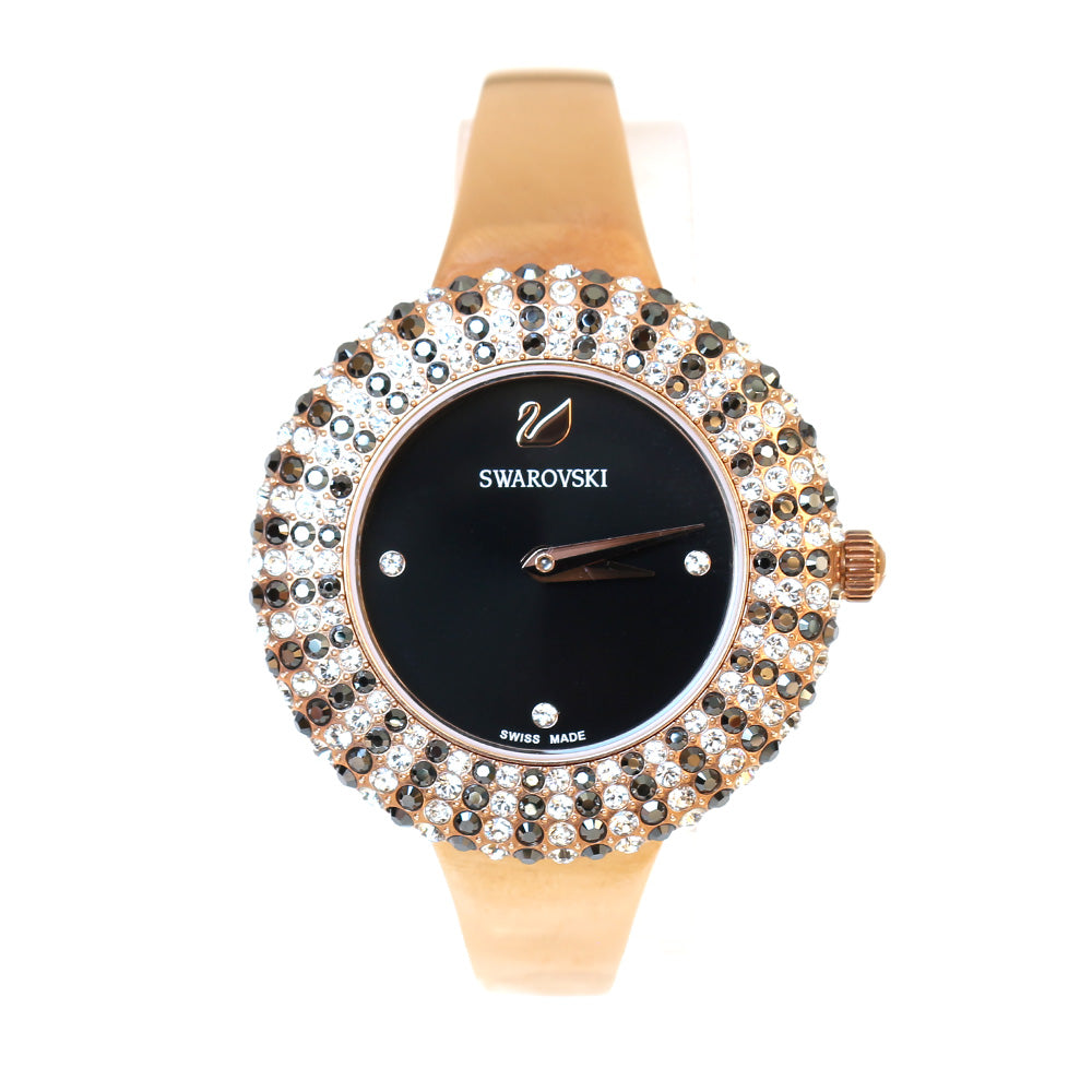 Swarovski Crystal Rose Watch Metal Bracelet Black Rose-Gold Tone