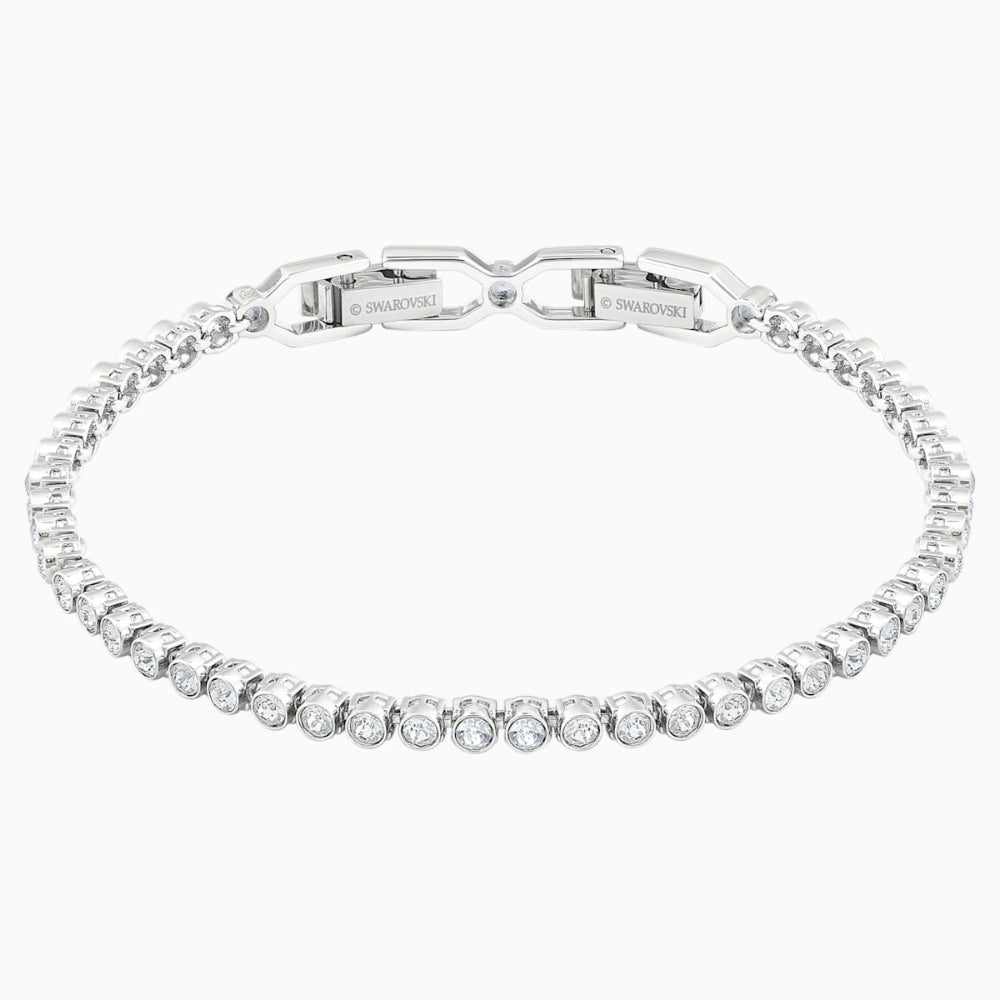 A classic bracelet with a gleam that speaks volumes! This delicate strand of bezel-set clear crystals on a rhodium-plated bracelet is very dainty and minimalistic in its look. However, it makes a bold statement of sheer elegance. It has a secure foldover clasp closure and comes with an extender.