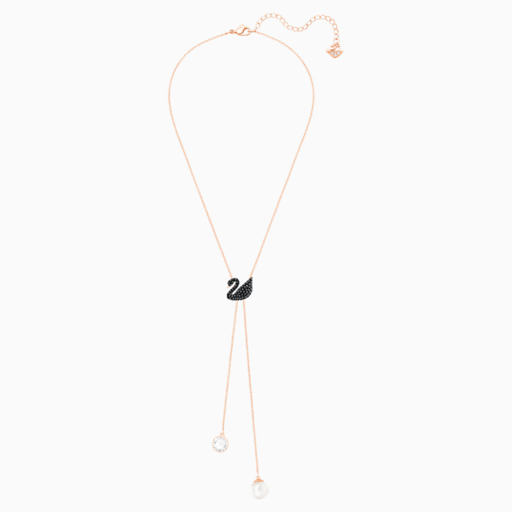 Look Effortlessly Chic With This Modern Take On Our Iconic Motif. The Double Y-Shaped Necklace Features Our Legendary Swan Sparkling With Black Crystal Pointiage®. The Two Dangling Elements Are In Rose Gold-Plated Metal With Crystal And Crystal Pearl Details.