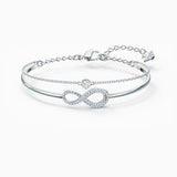 Rhodium Plating And White Crystals Perfectly Complement Each Other In This Elegant Swarovski Bangle. Featuring An Infinity Symbol, It Sparkles Like The First Stars In The Sky At Dusk. The Rhodium-Plated Chain And An Elegant Single Crystal Complete The Design. An Ideal Gift For A Special Occasion – For A Loved One Or Yourself!