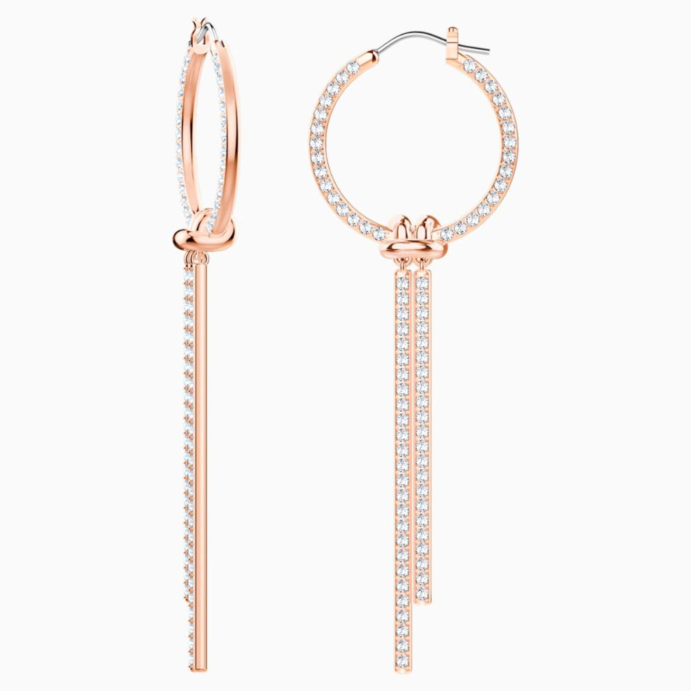 Gift with glamour by choosing this daring pair of on-trend maxi hoops. A bestselling design, the knot motif symbolizes the unique bond between two people. Combining crystal pavé, rose gold plating, and elegant dangling elements for a cool and romantic look, they are full of Swarovski sparkle.