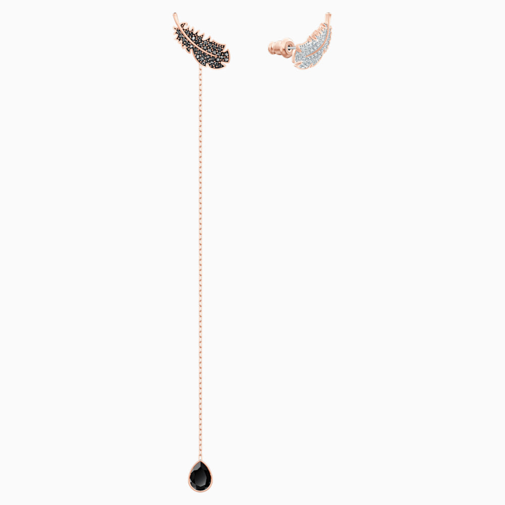 Whether You'Ve Been Naughty Or Nice This Year, You'Ll Love This Versatile Pair Of Pierced Earrings. Elegantly Combining Crystal Pavé And On-Trend Feather Motifs, The Rose-Gold Tone Plated Design Can Be Worn With Or Without The Dangling Chains To Create Different Effects. Try Styling Asymmetrically For An Up-To-The-Minute Look.