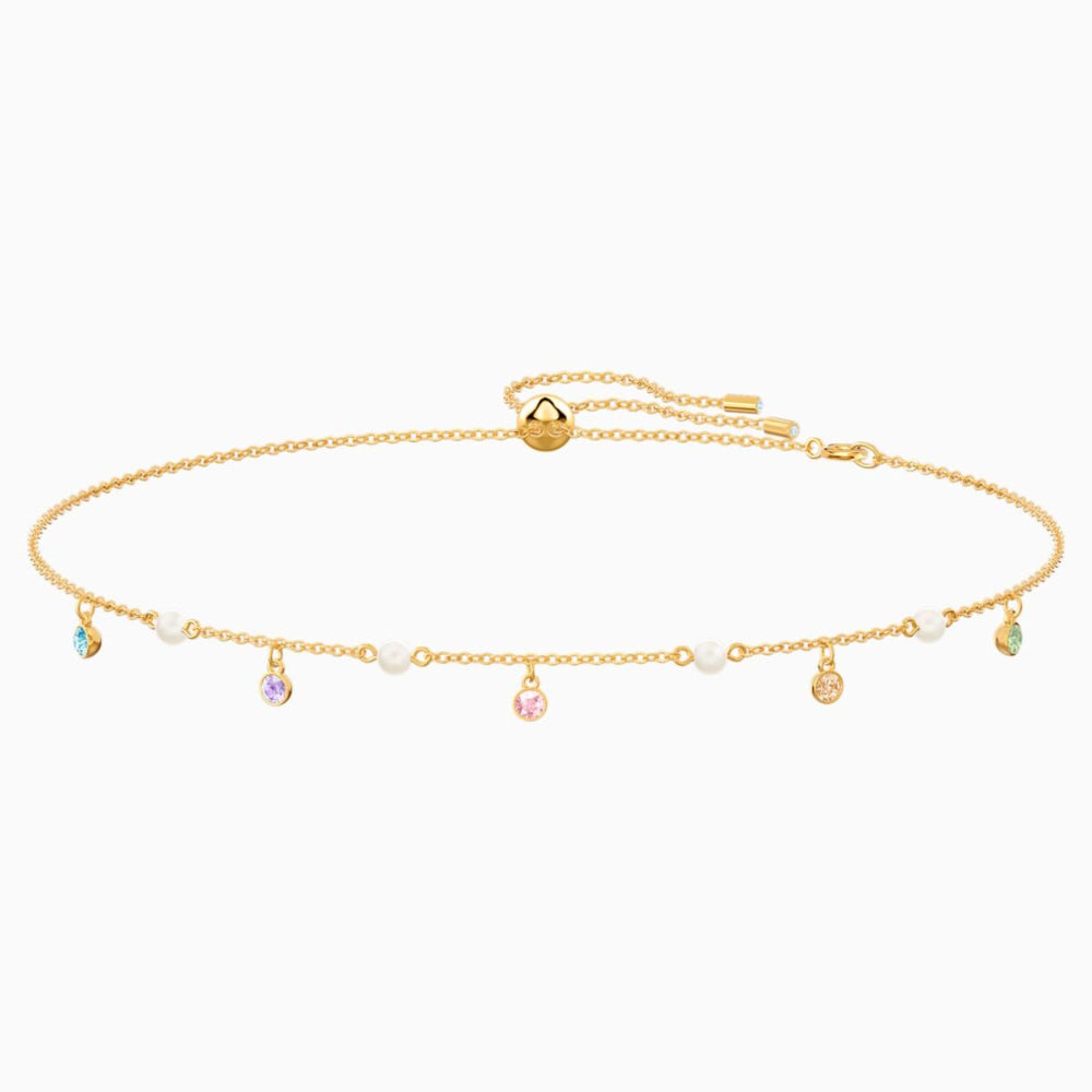 Inspired by the feel-good factor of summer vacations, this glam necklace features a variety of dangling pastel-colored crystals that dance playfully as you move. The gold-plated chain is finished with a sliding mechanism, enabling you to adjust the length to match your outfit. Matching items are available.