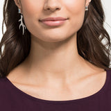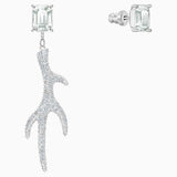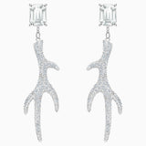 Champion the beauty of nature this winter in this striking and versatile pair of rhodium plated pierced earrings. Paying tribute to the wildlife of the Arctic Circle, the daring antler silhouette, which glitters with crystal pavé in a refined mix of icy tones, drops down from a brilliant crystal. The design can be worn in different ways: as studs, with the dangling antlers, or asymmetrically. Matching items are available for added Nordic vibes.