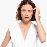 Two nautilus shell-shaped elements embellished with white and blue crystals add maritime flair to this necklace by Swarovski. They are accompanied by a white Crystal Pearl for timeless appeal. This rhodium-plated piece of jewelry goes perfectly with classic or monochrome outfits, offering a modern, fashionable look. A great gift giving idea. The pendant comes on a chain.