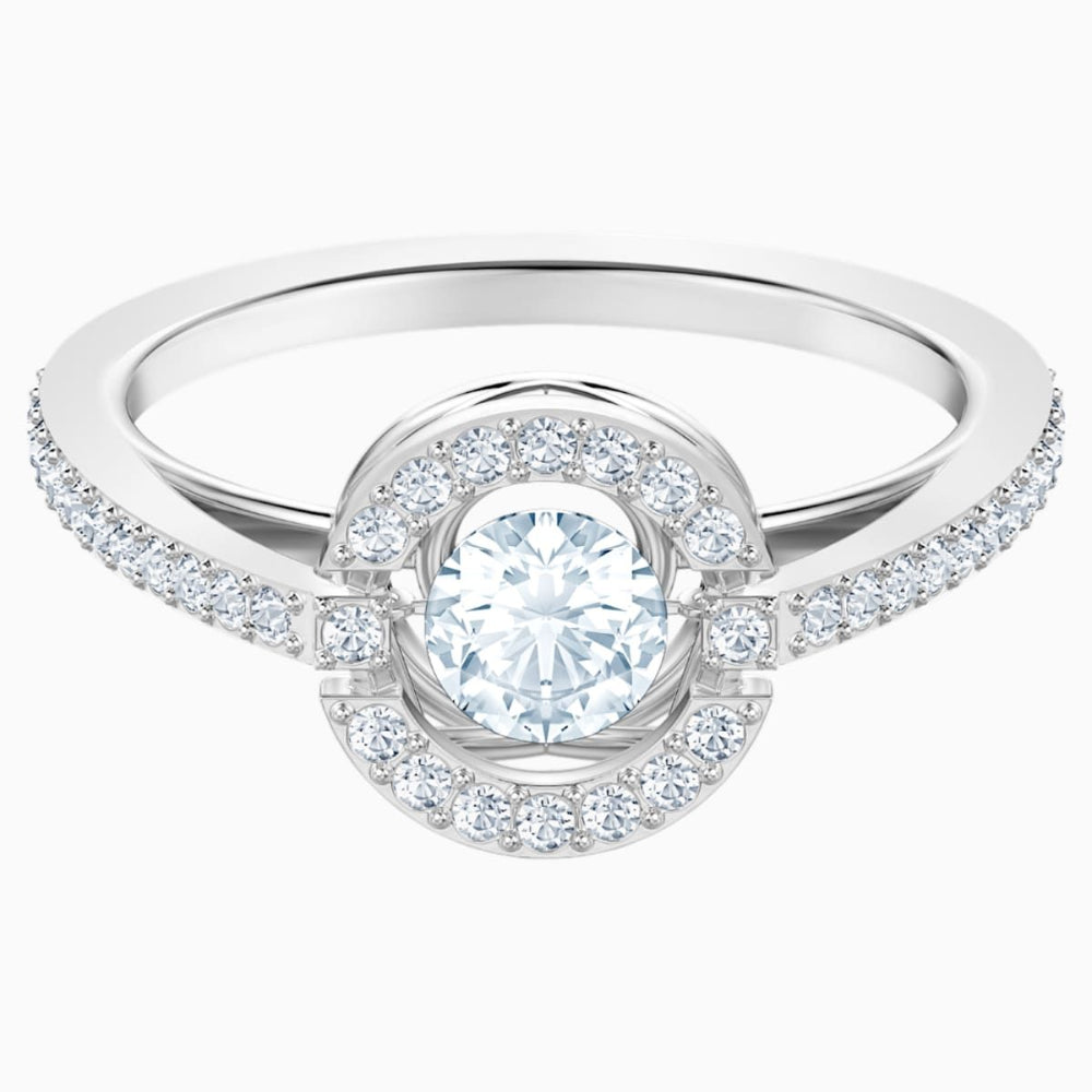 A lovely gift for Mother’s Day and beyond, this stunning rhodium-plated ring is a timeless addition to any jewelry box. The first time our innovative ‘dancing crystal’ concept has been used in a ring, the design features a round stone inside a 3D cage enhanced with crystal pavé. Playful sparkle with elegant execution.