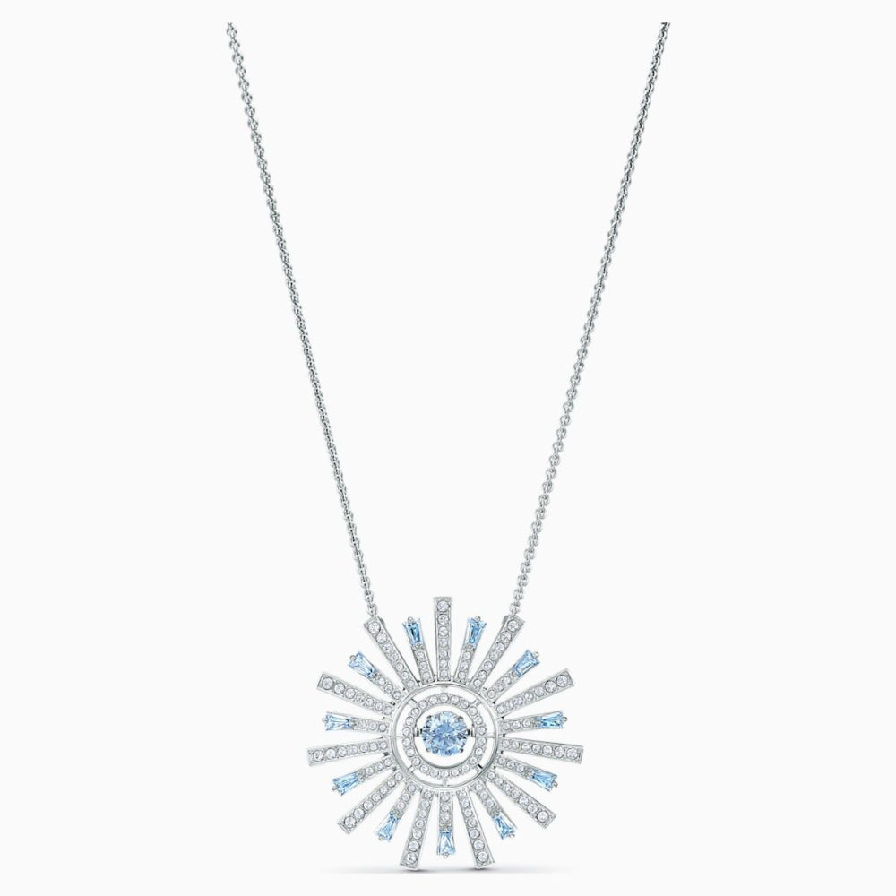 Celebrating Swarovski's 125th anniversary, this beautiful necklace features a stylized flower, with rhodium-plated petals extending from a central blue stone. Light blue and brilliant white stones create a glamorous look that is ideal for elegant evening wear. A sliding mechanism can be used to adjust the length for different styles. A great gift for fashion-conscious women.
