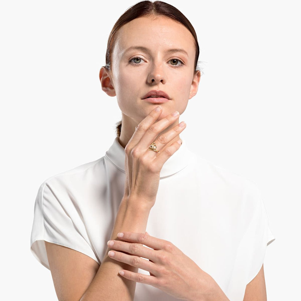 This Swarovski ring is a combination of nature's beauty and elegant design. The gold-tone plated open-shank silhouette is set with numerous sparkling Swarovski crystals, which refract incoming light beautifully. The ring's naturalistic design, inspired by tropical leaves, creates a unique look. A great gift for a special occasion.