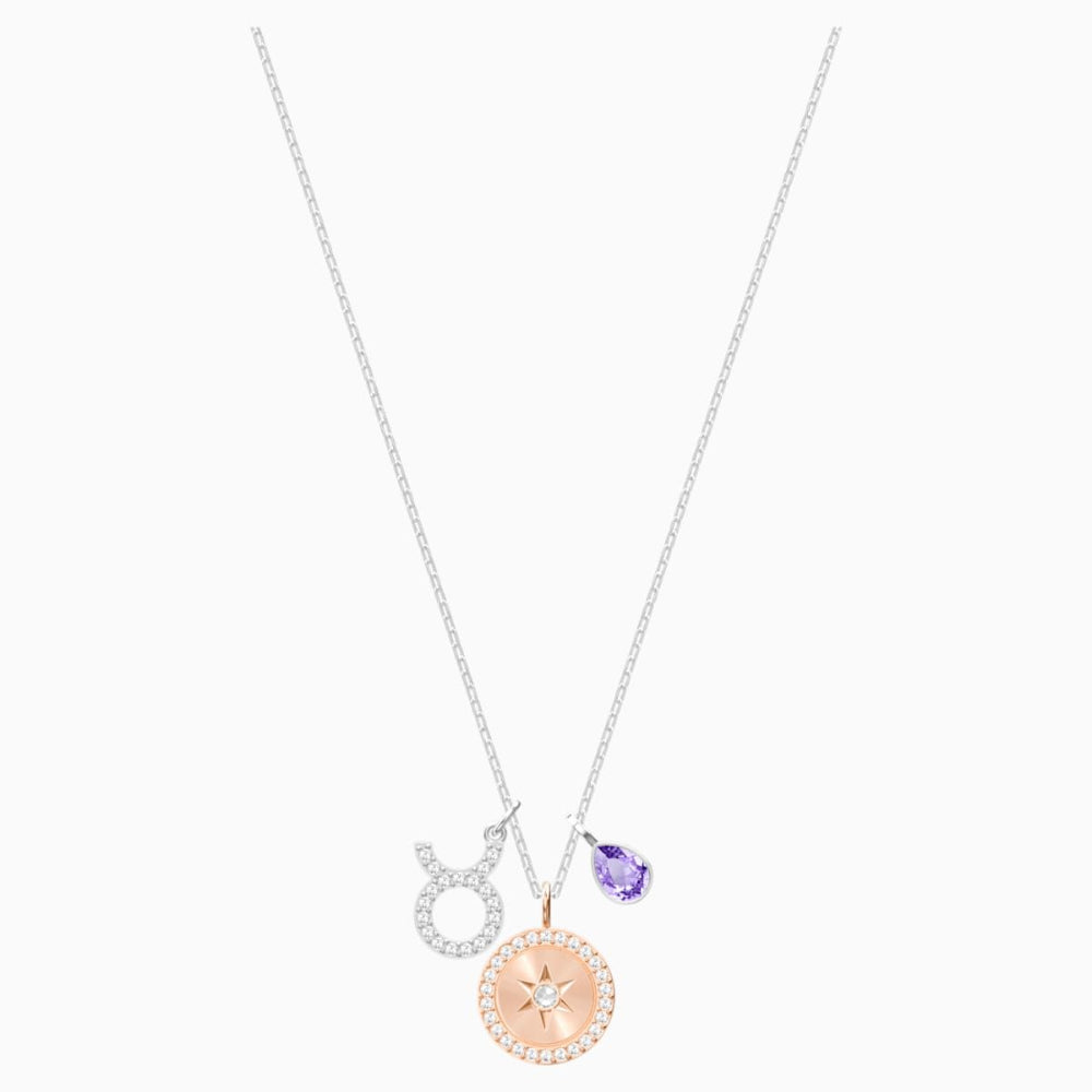 Bring the zodiac into your jewelry collection with this versatile pendant. Crafted in rhodium-plated metal, it glitters with a pavé embellished symbol representing the horoscope sign Taurus. The central medallion and the pear-shaped stone can be removed allowing you to style your own narrative. The pendant, which would be a great gift idea, comes on a chain.