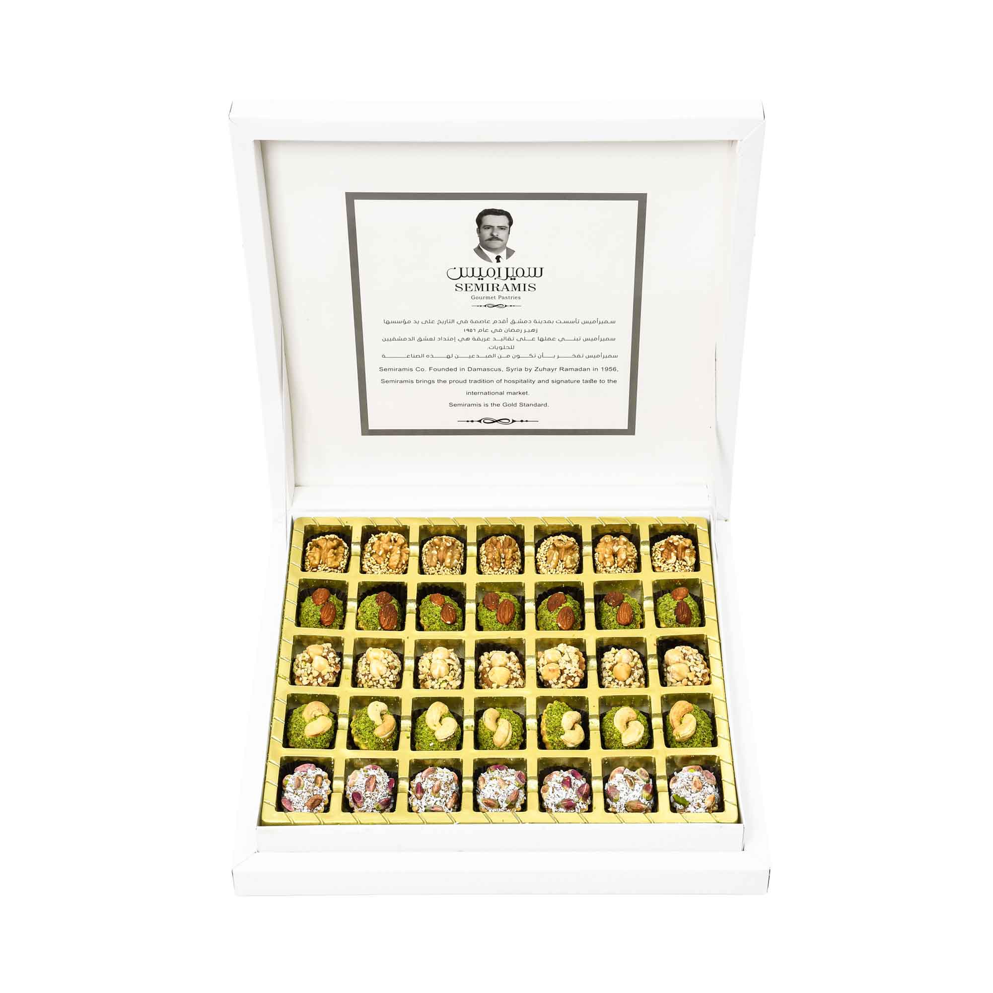 Semiramis Tart is a type of Middle Eastern dessert that consists of a delicious cookie dough topped with a layer of sweet date paste. The tart is also adorned with an array of different nuts, such as almonds, pistachios, and walnuts, placed on top of the date paste to add a crunchy texture and additional layers of flavor. Like its namesake, the Semiramis Tart is a beautiful and indulgent dessert that is sure to impress anyone who tries it. Semiramis Tarts have become a popular dessert in many Middle Eastern countries, and they are often served during special occasions such as weddings, holidays, and family gatherings. They are also a staple in many Middle Eastern bakeries, and some even offer different variations, such as adding a drizzle of honey or a sprinkling of spices on top. Semiramis Tart is a delectable dessert that perfectly combines different flavors and textures to create a unique and delicious treat. Its rich history and popularity make it a must-try for anyone looking to experience the taste of Middle Eastern cuisine. SPECIFICATIONS