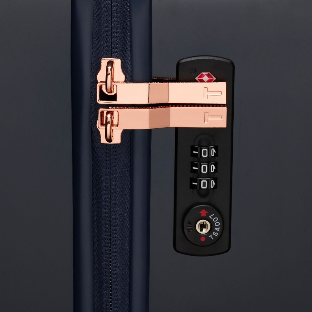 Integrated TSA lock: Stylish and secure integrated TSA locking system with elegant Ted Baker branded zip pulls.