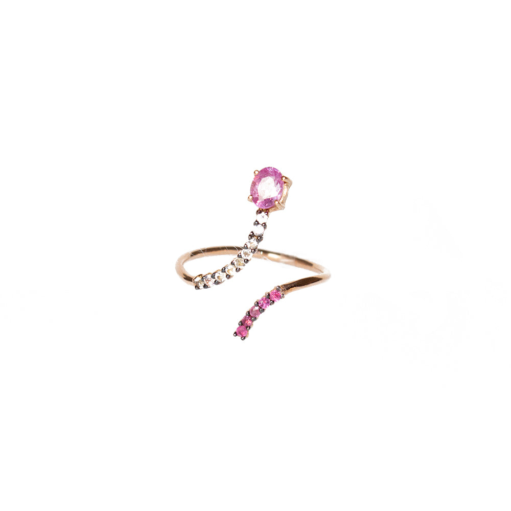 Ring 14 carat pink gold 1.64 Wt grams with diamond 0.10/ Precious stones sh 0.70 & Rb 0.50