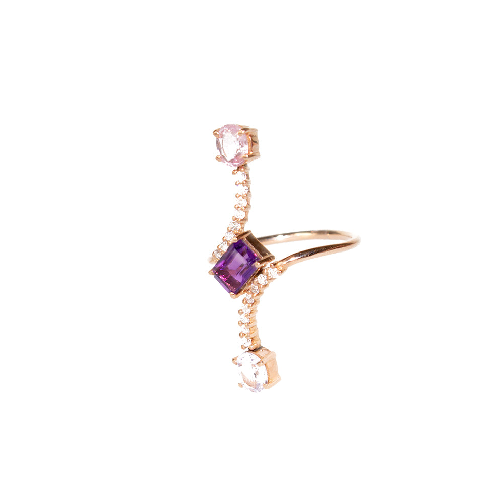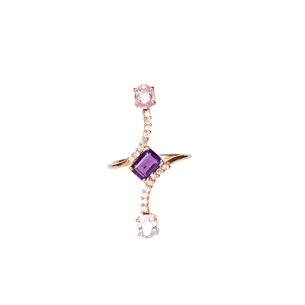 Ring 14 carat pink gold 2.52 Wt grams with diamond 0.20/ Precious stones sh 1.20/2 & Am 0.50/1