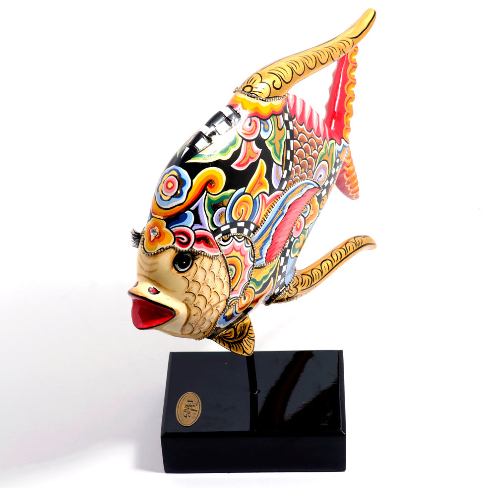 Coral fish L: Coral fish are the most colorful fish that live in the fascinating coral reefs of the oceans. In this case too, Tom´s Drag manages to give them even more extravagant costumes and thus make them the unrestricted exotic of the seas. Fish on a removable rod base.