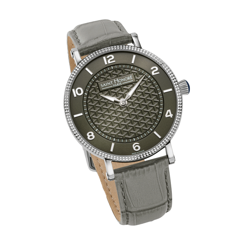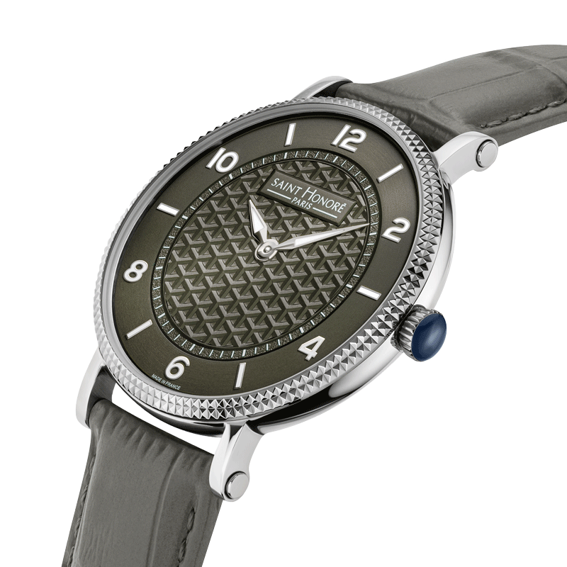 Getting its name from the famous Parisian neighbourhood overlooking the Eiffel Tower, the Trocadéro’s design was the brand’s inspiration. SAINT HONORÉ endeavored to perfect each element of the watch by adorning the bezel with a “clous de Paris” decoration in a very accomplished two-row arrangement. With the deceptive simplicity of a two-handed movement, Trocadéro is exceedingly easy to read and reveals exquisite finishes: guilloché dials, Roman numerals, “sword” hands and a chiseled crown adorned with a black cabochon.